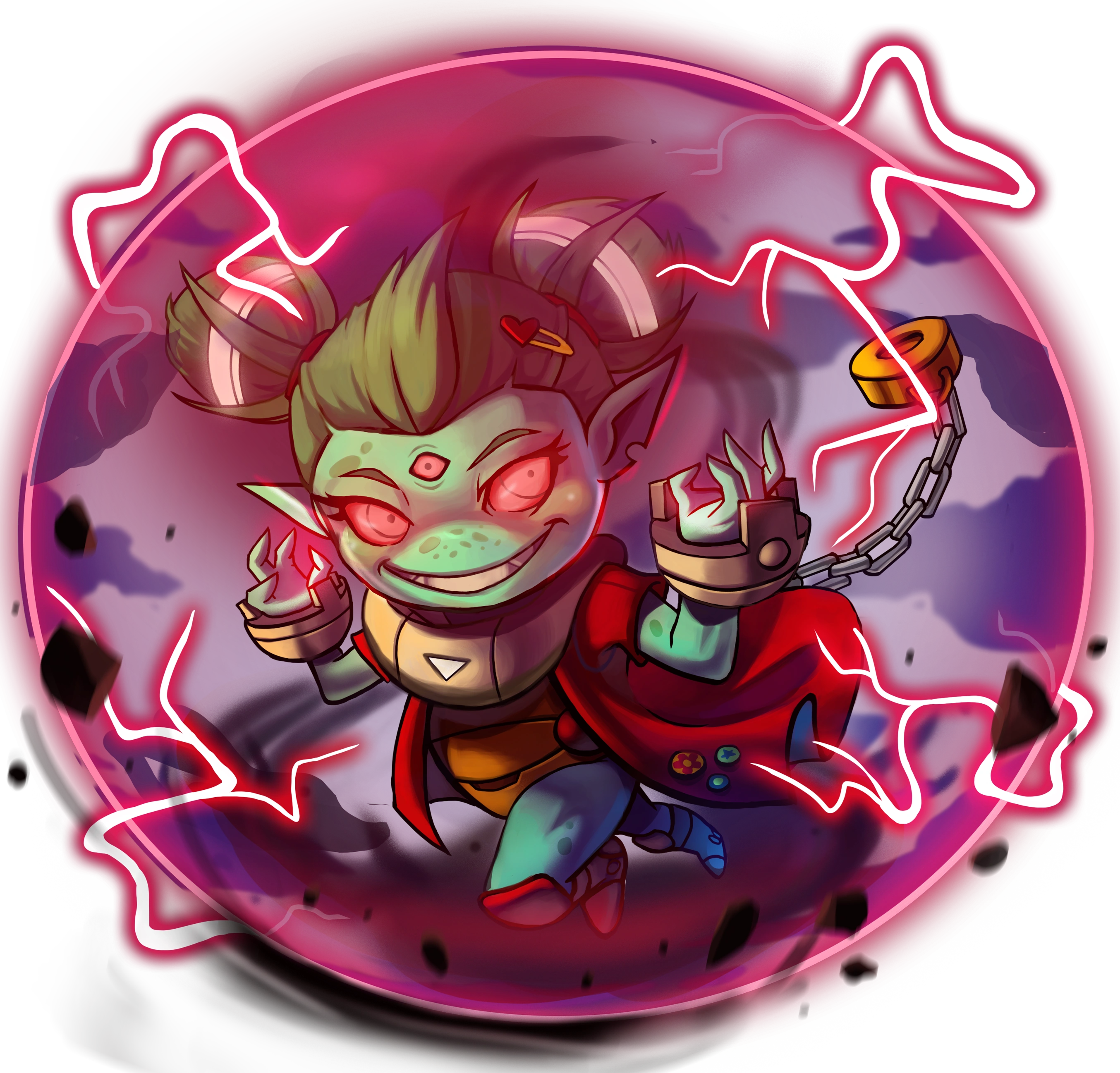 When they finally figured out Ayla's "gifts" and dark sense of humor, they turned her over to the Sunny-daisy School of Social Re-adjustment. A few short days and several fires later, she got transferred to a maximum security psychiatric ward where she went berserk and chose the nearest wall for her stage exit. Using her cute puppy-dog eye routine she managed to hitchhike her way across the galaxy and ended up with the Awesomenauts who, after her tantrums left half the ship in ruins, couldn't wait to get her in a droppod and away from their precious belongings. Still, she's a cherished member of the group, requiring only a gold-star sticker for her efforts on the field of battle!