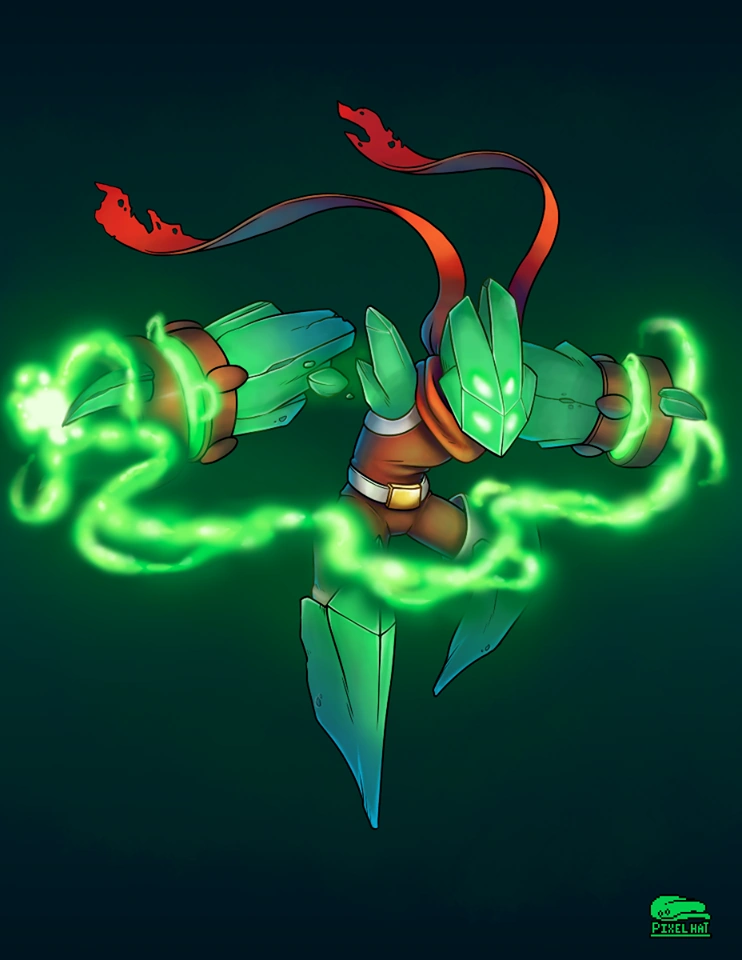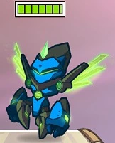 This skin makes Ix into a robotic angel. He has a visor instead of a face, with a crystal floating slightly above his head. He has large shoulder pads and two holographic wings on his back. The bottom of his feet have jet thrusters, which can be seen when he moves and jumps. He leaves a green glow effect whenever he moves.