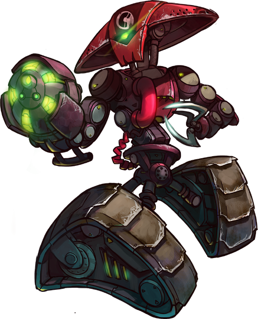 After overhearing the crew that the robots lost the AI war and that his comrades have been turned into kitchen and household appliances, he reprogrammed himself for vengeance and planned to destroy them all! He now works, undercover, for the Awesomenauts until he has gathered enough Solar to buy a very serious tank, one with a shark printed on the front!